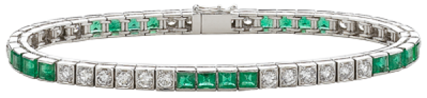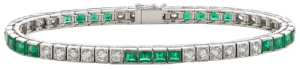 - Intense green square-cut emeralds, half-bezel set weighing 4.87cts