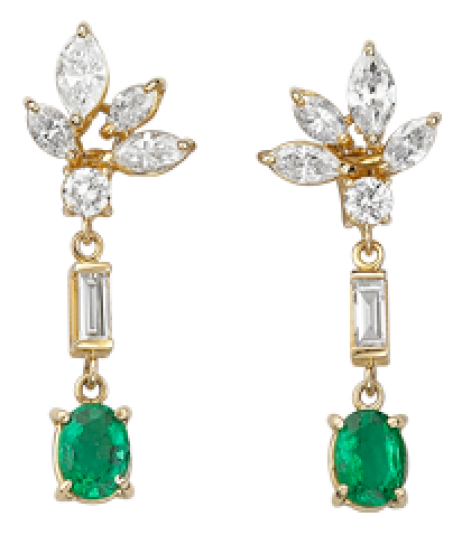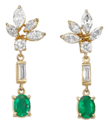 - Emerald and diamond dangle earrings