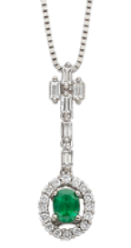 - Emerald and diamond pendant with .28ct oval emerald