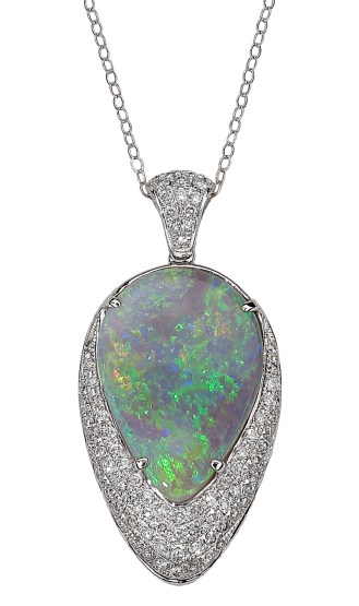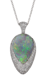 - Opal pendant with 5.48 teardrop-shaped black opal and .71cts diamonds