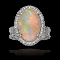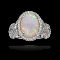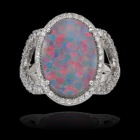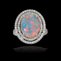 Black Opal Ring Encircled in Diamonds