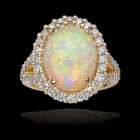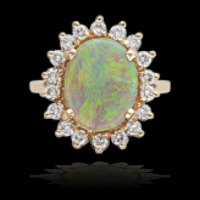 Yellow Gold Opal Ring surrounded in Diamonds
