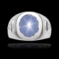 Gents Natural Blue Star Sapphire White Gold Ring