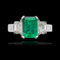 Platinum Emerald Ring with Trilliant Diamonds