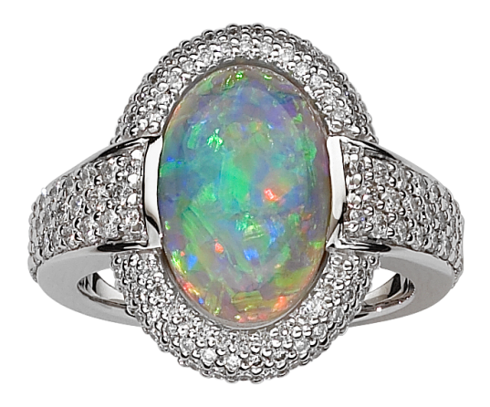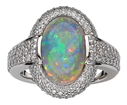 - Opal and diamond ring with one intense black opal weighing 3.55cts (13.39 x 8.9 x 5.03mm)