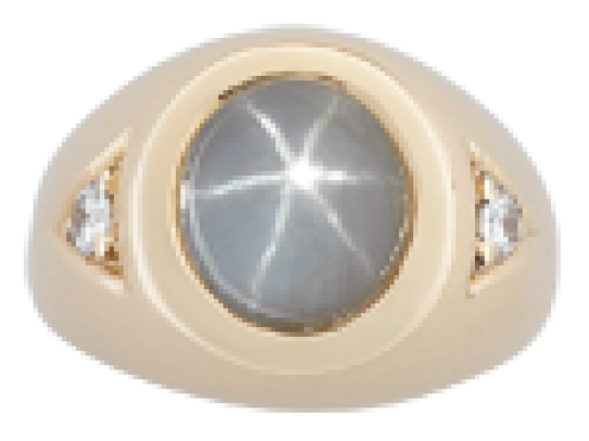 - Gents natural blue star sapphire with perfect 6-point star on a 7ct sapphire and 2 diamonds