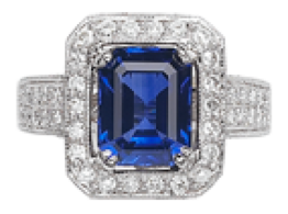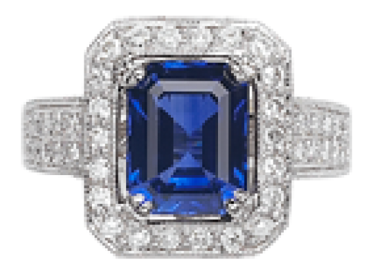 - 4.47 emerald cut blue sapphire surrounded by 1.38cts of round diamonds