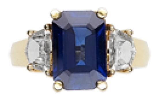 - 4.12ct emerald cut sapphire and .68cts trapezoid diamonds